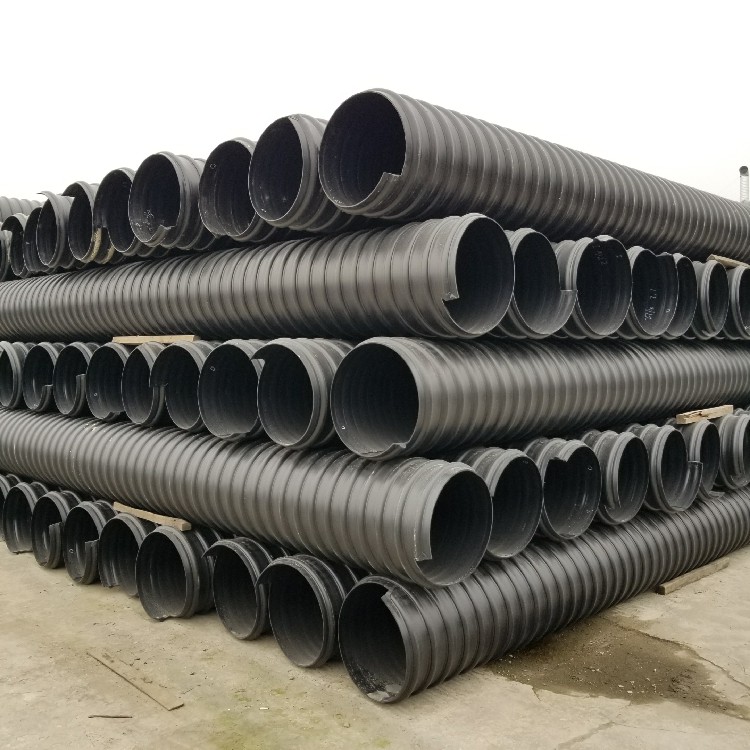 鋼帶加強PE螺旋波紋管是由聚乙烯在熔融狀態(tài)下和經(jīng)防腐處置過的鋼帶復兼并纏繞成型的管道,中間經(jīng)彎曲處置的鋼帶使管道具有較強的剛度。外層經(jīng)聚乙烯包裹后防止了鋼帶的腐蝕并使得管道內(nèi)壁潤滑。在鋼帶和聚乙烯之間采用特殊資料作為過渡層,使得兩種資料粘合結(jié)實、牢靠。適用于埋深的排污工程。